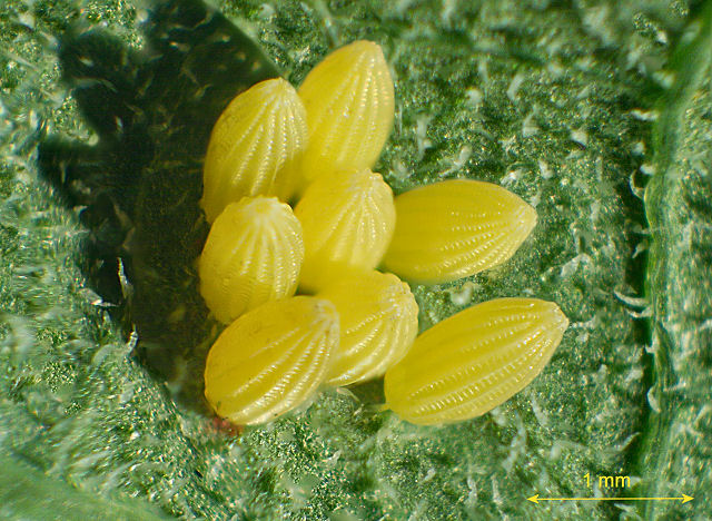 Cabbage White Butterfly EggsProjectina microscope Composite image, manually edited Specimen found on a nasturtium leaf in the garden